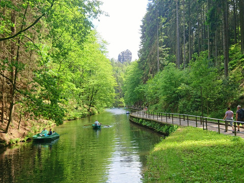 Deze zeer indrukwekkende tocht loopt van Goßdorf-Kohlmühle door het prachtige Schwarzbachtal naar Lohsdorf en vandaar over de oude glasweg naar Hohnstein. Vanaf Hohnstein gaat de route verder over het interessante Hockstein naar Rathen.