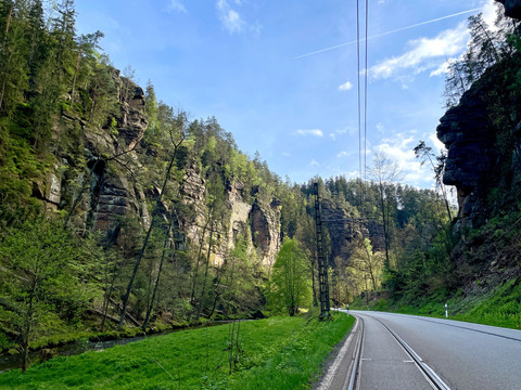Z náměstí v Bad Schandau sledujte ukazatele na Hinterhermsdorf a po přibližně 300 metrech odbočte do Kirnitzschtal. Přestože je silnice přes Kirnitzschtal zejména o víkendech velmi frekventovaná, díky mírnému sklonu a velmi dobrému povrchu je stále dobře sjízdná. Koleje historické železnice Kirnitzschtal vás doprovodí až k vodopádu Lichtenhain. Za mlýnem Lichtenhainer Mühle se sklon cesty postupně zvyšuje. Minete mlýny Felsenmühle, Neumannmühle a Buschmühle a brzy dosáhnete místa, kde silnice opouští údolí Kirnitzschtal a stoupá směrem na Saupsdorf.