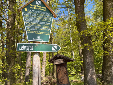 Na začátku prohlídky vede trasa po ulici Alte Tetschner Straße k dřevěné sově. Ta označuje vstup na naučnou stezku. Rostliny a živočichové, kteří zde žijí, jsou představeni na informačních tabulích. Trasa vede až na vrchol Schleifersberg. Odtud je nádherný výhled na nejvyšší horu Saského Švýcarska Hoher Schneeberg. Arnoldbank je skvělým místem pro piknik. O pár kroků dál můžete navštívit hmyzí hotel. Naučná stezka pokračuje k rybníkům. Je zde také nádherné místo k odpočinku, zastřešené odpočívadlo a několik informačních tabulí pro ty, kteří neradi dlouho sedí. V létě zde kvetou krásné lekníny. Krátce za rybníky trasa odbočuje z naučné stezky a pokračuje vpravo po cestě k rybníkům a pak opět vpravo do obce a zpět k výchozímu bodu trasy.