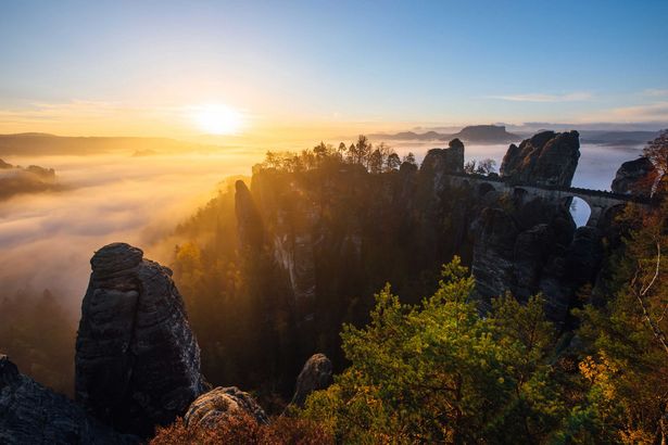 Il y a plusieurs siècles, des chevaliers-brigands parcouraient ces montagnes. Plus tard, des artistes romantiques comme Caspar David Friedrich furent fascinés par ces formations rocheuses uniques. Aujourd’hui, le pont de Bastei et ses environs sont l’une des destinations les plus visitées de l’Allemagne de l’Est. Depuis la plateforme panoramique de Basteiaussicht, rouverte en 2023, on peut admirer une vue à couper le souffle sur la vallée de l’Elbe, le mont Lilienstein et la forteresse de Königstein.