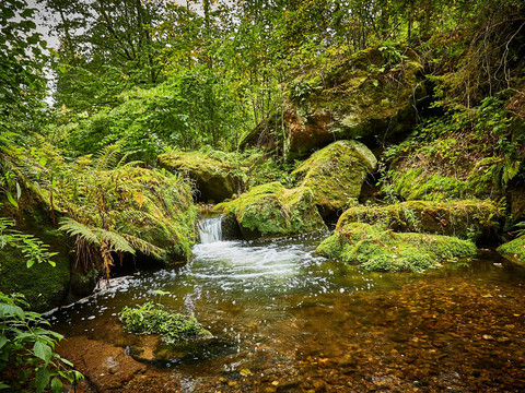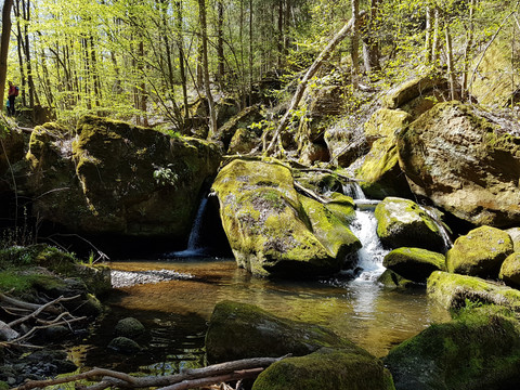 A visitor mine with an underground lake and a fairytale forest with a clear mountain stream: Berggießhübel is a magical destination for the whole family! Between moss-covered boulders, the mountain stream Gottleuba winds here or shoots as a small waterfall over the sandstone boulders.