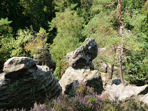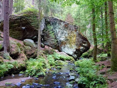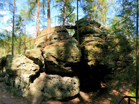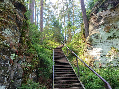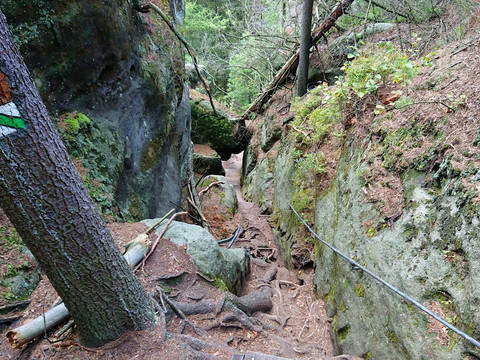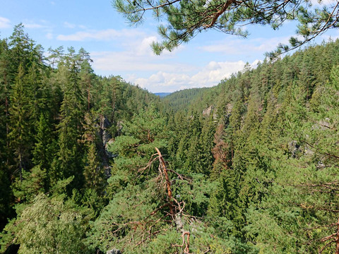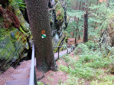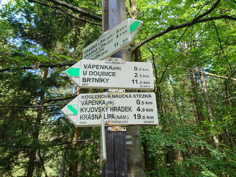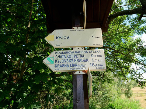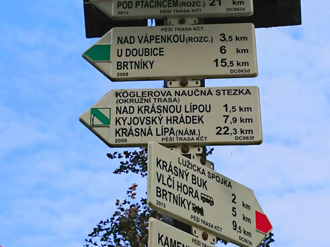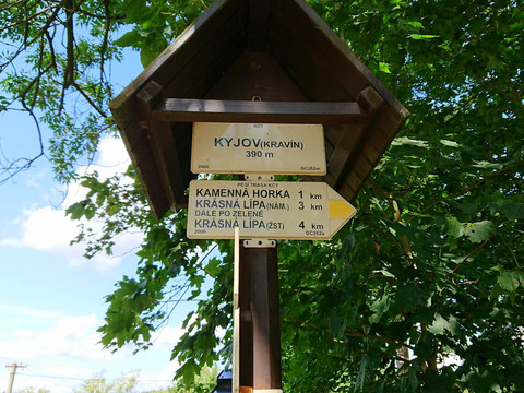 De rondwandeling begint en eindigt in Krásná Lípa en loopt van daar via Maškův vrch naar Kjyov naar Kyjovské údolí, waar je ook kunt overnachten als je de tocht in twee etappes wilt splitsen. Vanuit Kyjov keert u terug naar het beginpunt via Vlčí hora, waar u langs vele andere interessante plaatsen en uitzichtpunten komt. De natuurroute is ongeveer 24 kilometer lang, maar het is de moeite waard om onderweg een paar omwegen te maken om enkele van de meer opvallende plaatsen te bezoeken.