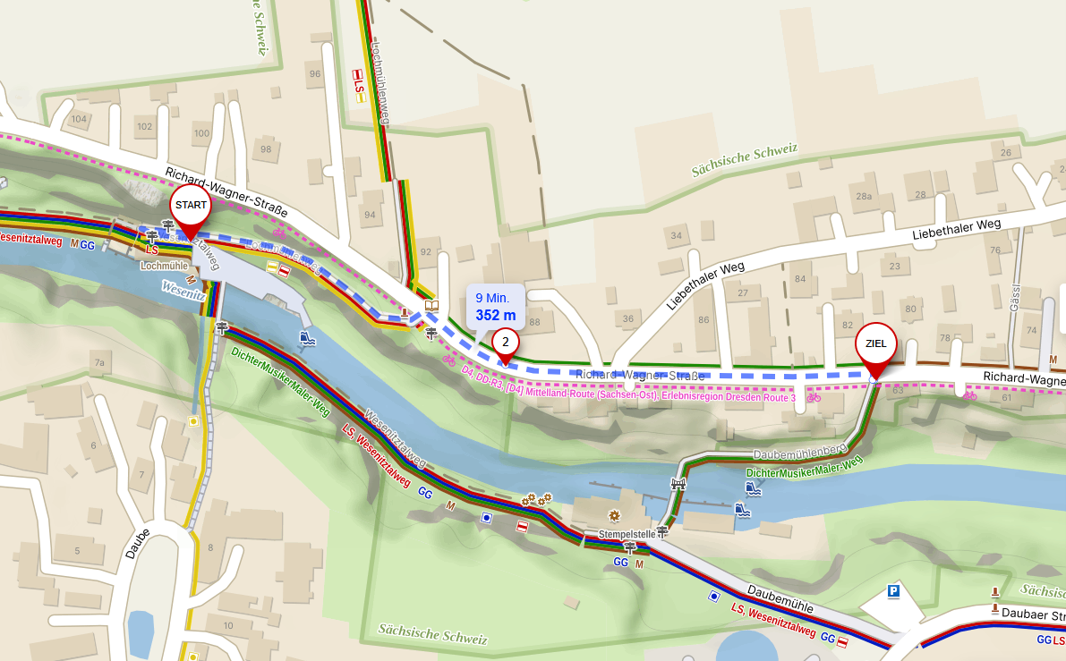 - Etappe 4: Die Neumannmühle hat Sonntag und Montag Ruhetage. Vom 28. Juni bis zum 14. Juli 2025 befindet sie sich in den Betriebsferien.
