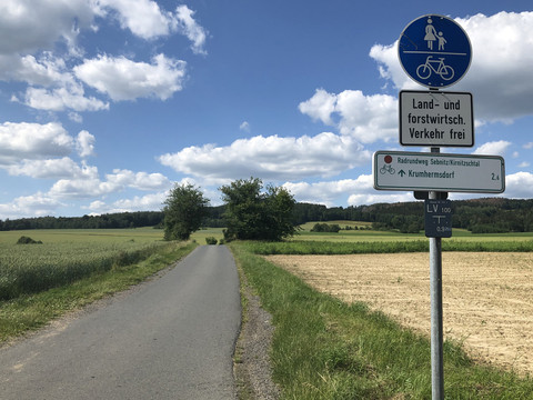 Als u verder wilt fietsen, rijdt u bergopwaarts door Ulbersdorf langs de kerk en het kasteel, steekt u de S 165 verder over richting Krumhermsdorf. De volgende 500 meter zijn 18% steil en bovenaan bereikt u het hoogste punt van de Tor (416 m). Vanaf hier heeft u een prachtig uitzicht op het Ertsgebergte. Bij de ingang van Krumhermsdorf gaat de route rechtsaf naar Schönbach. Om op de rondfietsroute Sebnitz/Kirnitzschtal te blijven, gaat u in Schönbach rechtsaf de "Goldgruben" in. Na de spoorwegonderdoorgang bereikt u kort daarna de S 165, die u links inslaat.Bij het winkelcentrum gaat u rechtsaf de Ulbersdorfer Weg op en volgt deze tot aan de S 154. Volg deze weg naar links gedurende ongeveer 100m tot aan de brug. Daar slaat u rechtsaf de Hainersdorfer Weg in en volgt u de borden voor het fietspad. Volg de Hainersdorfer Weg en de Lessingweg tot aan het busstation. Daar gaat u linksaf richting de rotonde. Neem de eerste afslag via de Schandauer Straße tot aan het marktplein. Volg dezelfde weg als aan het begin van de tour om het treinstation te bereiken.