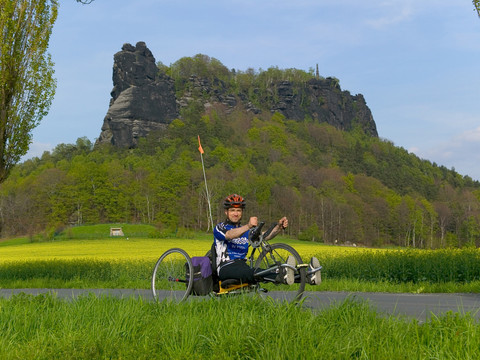 Vanaf het treinstation in Rathen volgen we eerst de borden naar het Elbe-fietspad richting Königstein. Het pad is zeer goed aangegeven en wordt op mooie dagen vaak bereden, dus een uitgebreidere beschrijving is niet nodig. We passeren het kleine dorpje Strand en bereiken na ongeveer 6,5 km Königstein aan de voet van het gelijknamige fort. Hier nemen we de veerboot naar de overkant van de Elbe naar Halbestadt. Nu slaan we linksaf en fietsen over een goede weg terug de Elbe af richting Rathen. 1,8 km verderop, kort na de Besenschänke, takt een splitsing in een scherpe hoek af van de asfaltweg. We verlaten deze weg en nemen vanaf nu het pad omhoog naar het vlakke gebied onder de Lilienstein. De eerste 180 meter van de klim zijn het steilst, maar de volgende 1,7 km doen je ook zweten met stijgingspercentages tot 10%. Na alle inspanning worden we beloond met een fantastisch uitzicht op de Lilienstein. Wanneer het pad bij de Napoleonstraße komt, slaan we nu linksaf richting Waltersdorf. De route klimt een beetje naar de grote kruising. We houden links aan en volgen de hoofdweg (niet de weg naar Rathen!). Voordat de verharde weg een goede kilometer later omhoog gaat over de Ziegenrücken richting Hocksteinschänke, slaan we linksaf en fietsen we over de Füllhölzelweg door de Koppelsgrund over een nogal hobbelig - maar erg romantisch - stuk richting Rathen. Wanneer het pad na een garage weer bij de weg komt, volgen we deze naar rechts naar het stadscentrum en naar de veerboot. Na de oversteek zijn we weer terug bij het beginpunt van onze reis. Als alternatief kunt u de weg van Waltersdorf rechtstreeks naar Rathen nemen, die ongeveer 2 km korter is. Let op: het stijgingspercentage is hier op sommige plaatsen 18% en de weg is ook gedeeltelijk geasfalteerd!