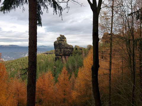 Ontdek de grotten van Kleinhennersdorfer Stein en word beloond voor de beklimming van de Papststein met een prachtig uitzicht en een stop bij de Bergbaude!