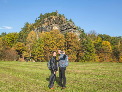 Vanaf het veerstation in Rathen leidt het pad aanvankelijk in de richting van de Elbweg. Volg deze over de spoorwegovergang tot je bij een "rode lijn" kruising aan de linkerkant komt. Dit is de Rauensteinweg, die je vervolgens volgt tot aan de klim naar de Rauenstein. Op deze route passeer je bijvoorbeeld de Laasenstein. Vanaf de splitsing van het pad naar de beklimming van de Rauenstein loopt het pad parallel aan de Malerweg. Eenmaal boven is het zeker de moeite waard om een omweg te maken naar het uitzicht aan de linkerkant. Daar bevindt zich ook het rotsrestaurant Rauenstein. Direct daarachter bereikt u een prachtig uitzichtpunt. Volg na deze omweg de borden naar de Malerweg langs het bergkampad van de Rauenstein. Dit leidt eenmaal over de gehele, bijna een kilometer lange bergkam, vergezeld van een prachtig 360-graden panorama van rotsen, tafelbergen, het Elbedal, bossen, velden en dorpen. Na de afdaling volg je het pad rechts bergaf terug naar Oberrathen.