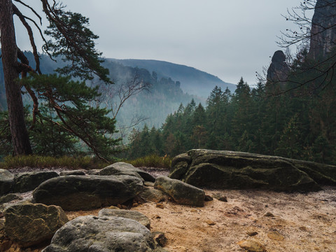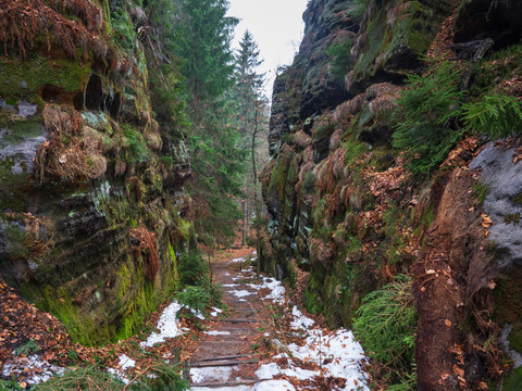Wandelen in de winter hoeft niet altijd sneeuw en zonneschijn te betekenen. Je kunt ook bij grijs weer je wandelschoenen aanzetten en de mystieke kant van Saksisch Zwitserland ontdekken. Deze uitdagende tocht is bijvoorbeeld een aanrader voor zulke dagen. Het grote voordeel is dat je bijna alleen bent.