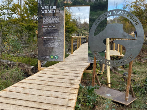 De route gaat verder langs de Reitsteig over een goed pad. Onderweg kom je langs bijzondere uitzichten, zoals bij de Wenzelwand, of doorkruis je het "schorskeverbos". De route gaat verder over een goed pad langs de Reitsteig. Onderweg passeer je individuele vergezichten, zoals bij de Wenzelwand, of doorkruis je het "schorskeverbos". Op de Reitsteig, vlakbij de beklimming van de Lehnsteig, kun je de avonturen- en informatiepaden "Wege zur Wildnis" bezoeken. Het eerste deel, geopend in november 2022, laat zien hoe divers en vitaal het bos zich in 15 jaar tijd zelfstandig heeft hersteld. Het tweede deel van het pad, geopend in oktober 2023, leidt door gebieden waar veel jonge berken, mossen, schimmels en andere planten al een jaar na de brand in augustus 2022 uit zichzelf zijn teruggegroeid. De paden zijn zeer goed gemarkeerd en het is dus gemakkelijk om je weg te vinden. Het pad leidt vervolgens terug naar Schmilka via het wortelpad.