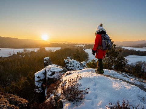 Die Luft riecht nach Schnee - ein weißes Kleidchen legt sich über die Landschaft. Die Winterzeit verordnet den Wanderern in der Sächsische Schweiz Ruhe und rote Wangen. Der Stadt entfliehen, einfach draußen sein und den Abend an einem Feuerchen, mit einer Tasse Kakao oder seinem Lieblingsbuch ausklingen lassen. Für unvergessliche Urlaubserinnerungen im Winter haben wir auf dieser Seite alles zusammengestellt, was Sie für Ihre Urlaubsplanung brauchen. Lassen Sie sich inspirieren.