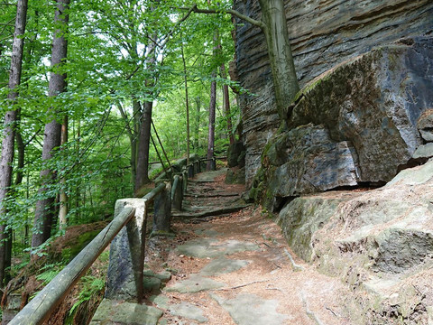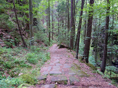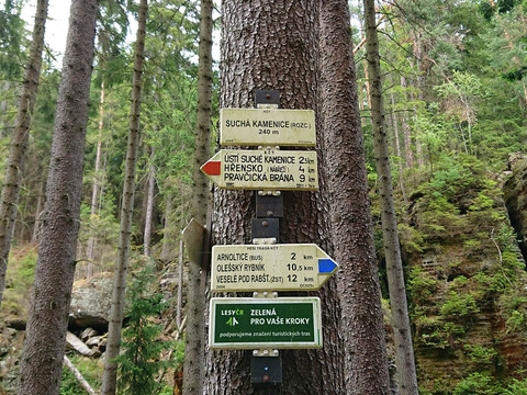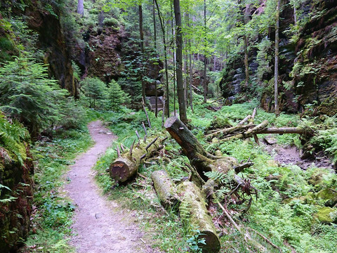 Diese aussichtsreiche Wanderung führt von Dolni Zleb (Niedergrund) über das Belvedere nach Hrensko (Herrnskretschen). Dabei kommt man durch die wilde und sehr interessante údolí Suché Kamenice (Dürrkamnitz-Schlucht).