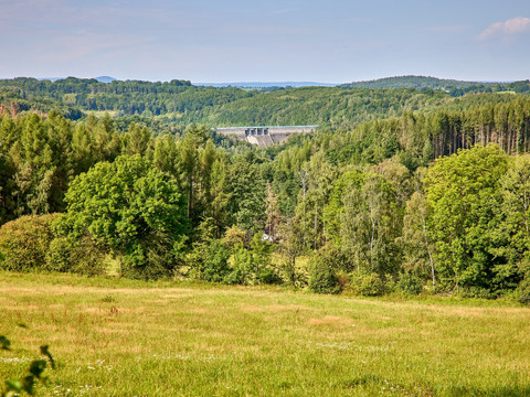 Nach einem längeren Anstieg ist schon der Kammweg in Sicht. Von hier oben eröffnet sich ein grandioser Blick in das Gottleubatal. Sie bleiben auf dem Grat, bis Sie nach etwa 600 Metern die Eisentreppe erreichen und wieder in den Ort gelangen. Folgen Sie weiter dem Piktogramm des Gottleubataler Panoramaweges und wandern Sie über den Vierzehn-Nothelfer-Weg bis auf den Augustusberg (Einkehrmöglichkeit im Panoramarestaurant). Genießen Sie die schöne Aussicht zur Talsperre Gottleuba und die Weite des Ostererzgebirges.